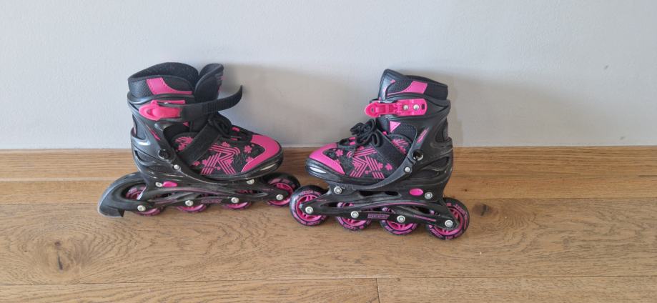 Dječje role Roces, na razvlačenje vel. 30-33, crno/roze. Kotači u vrlo dobrom stanju.