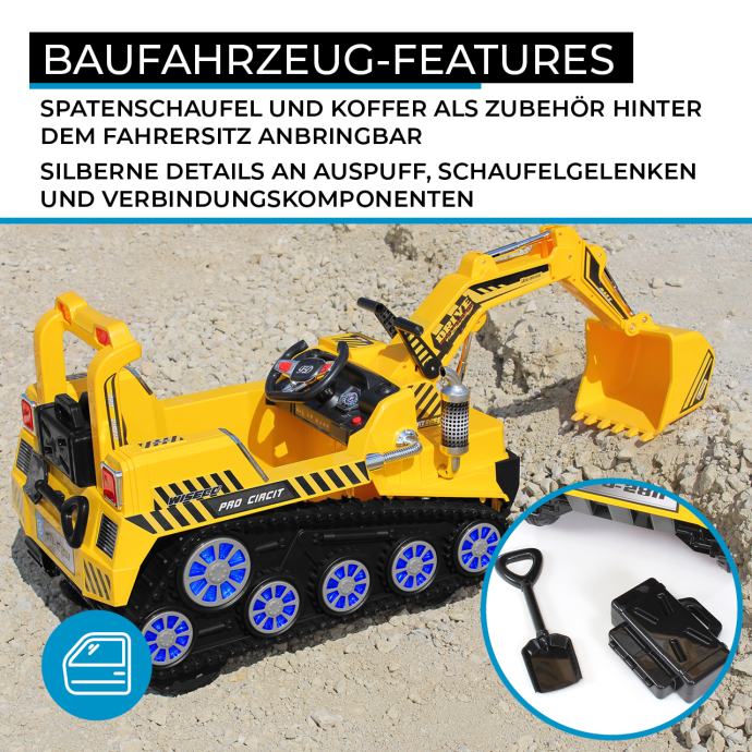 Ostale karakteristike: Zvuk motora prilikom pokretanja, meki start, pomična ruka bagera s lopatom, dodatna lopata i kovčeg