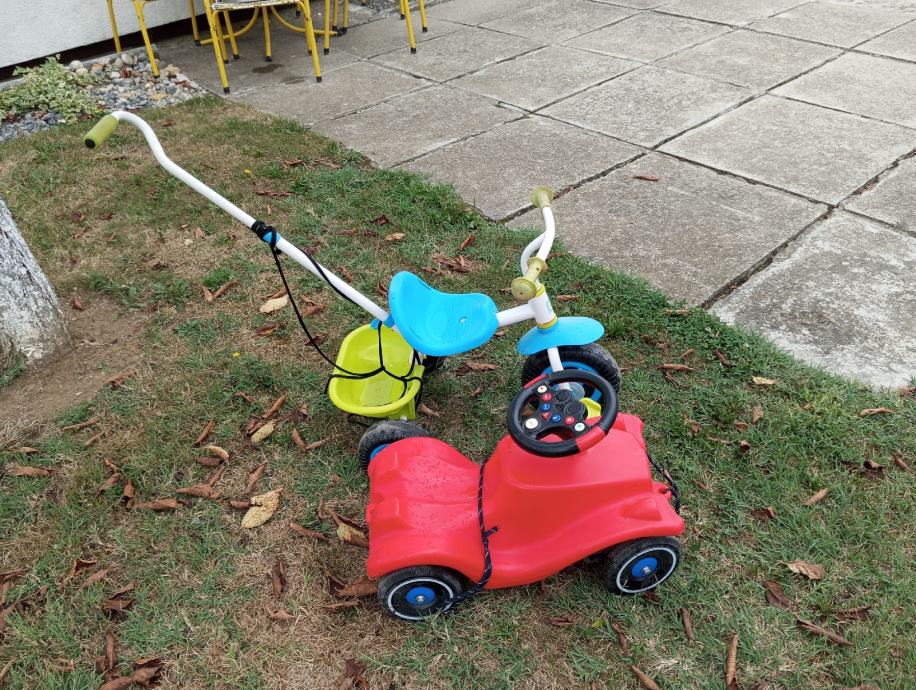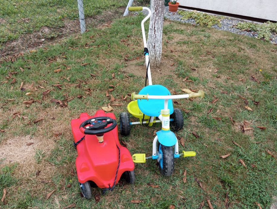 Prodajem dječji tricikl na guranje i vozilo za odgurivanje.