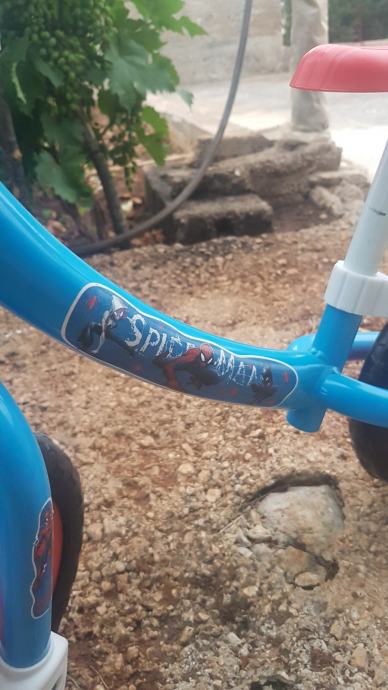 motiv na biciklu je lik Spiderman.