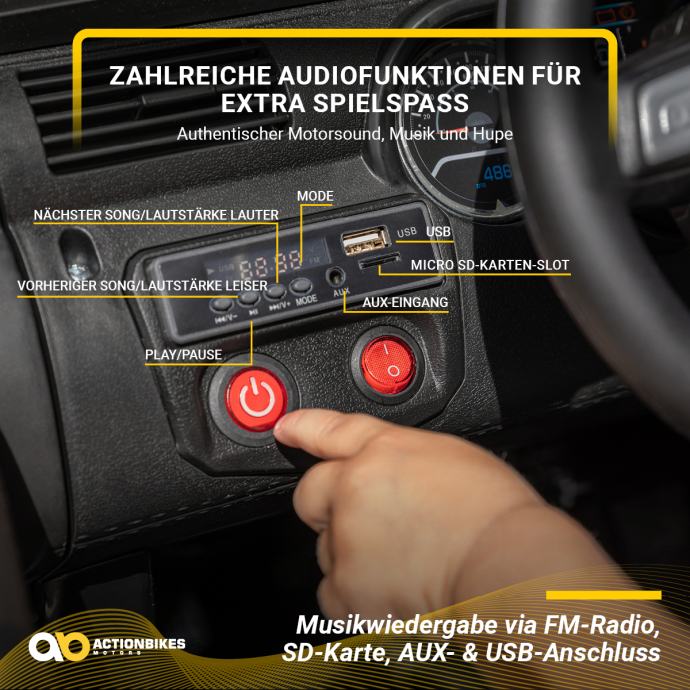 Audio funkcije: FM radio, SD kartice, USB, MP3, AUX FM radio