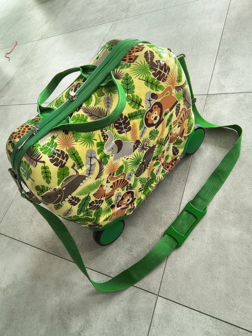može se nositi na ramenu ili vući iza sebe (dijete može sjediti i voziti - povlačenjem pojasa)