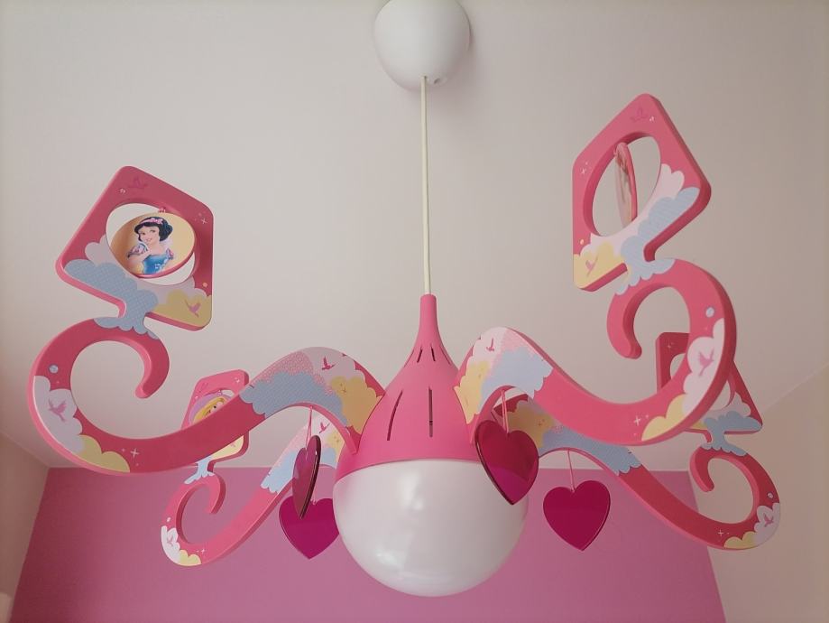 Viseća svjetiljka stvara okoliš koji djecu potiče na aktivnosti u kojima najviše uživaju - zabavu i kreativnost. Stvorit će prostor u kojem dijete može učiti, igrati se i spavati u društvu Disniyevih princeza. Dizajnirana ja tako da je sigurna za djecu. Savršena za dječju sobu.