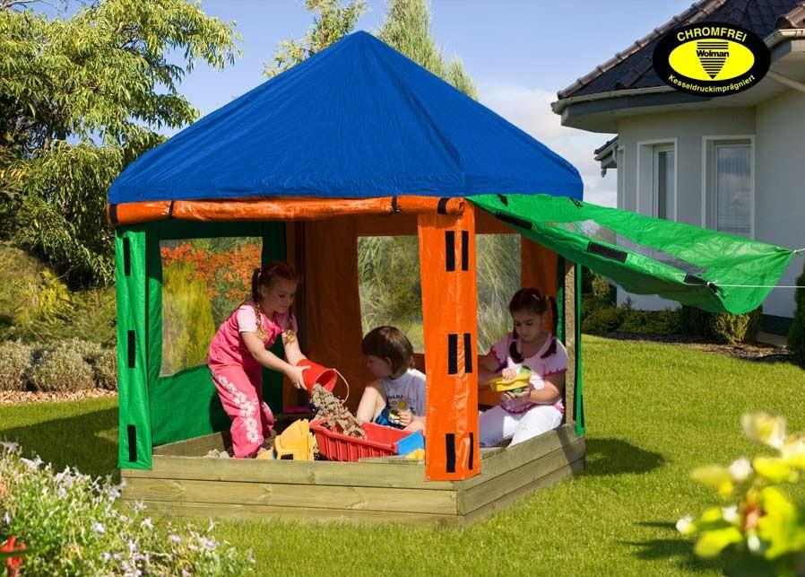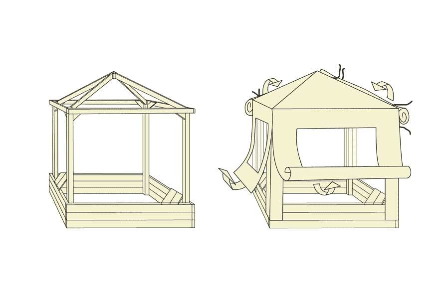 Pješčanik sa krovom Toni je za sva godišnja doba i za svako vrijeme. Paviljon pruža zaštitu od kiše i sunca za djecu i potpuno je zatvoren, tako da je susjedova mačka ne nalazi svoj put u nju.