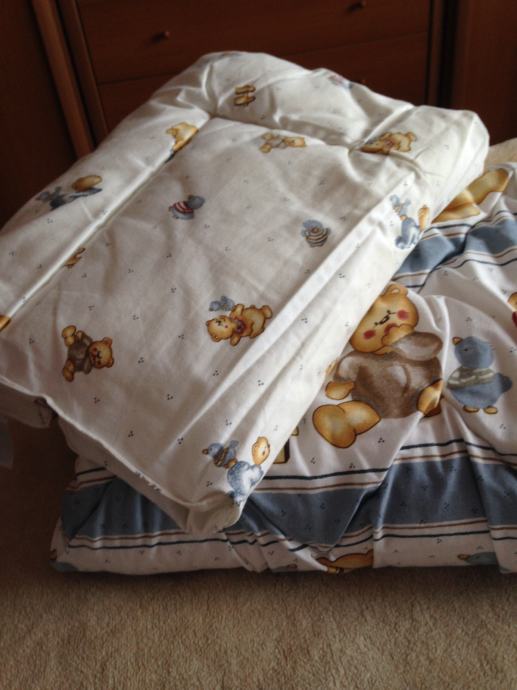 Prodajem dječji poplun, jastuk i tri navlake. Cijena je 13 e za sve.