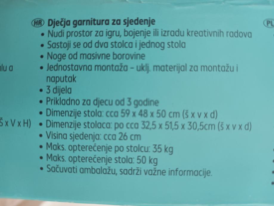 Prodajem novi, neotvoreni dječjii set - Stol i stolice.