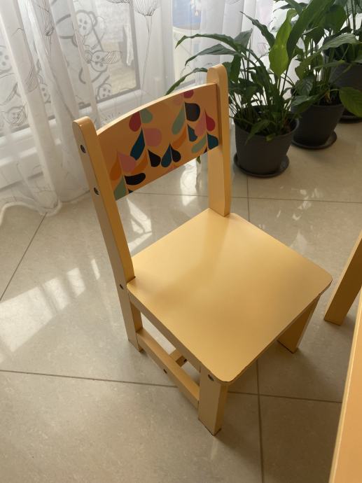 Stol i 2 stolice očuvane i čvrste za dob 1-8 god. Čitaj "RABLJENO" znači nije novo što podrazumjeva crticu,dvije... za 40€