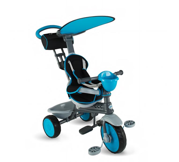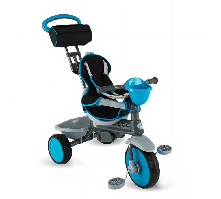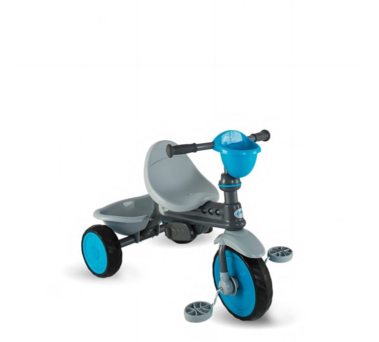 Tricikl Enjoy Plus plavi je višenamjenski i može biti idealan dar za rođendan djeteta te postaje pouzdan partner do pete godine. Kada je beba malena i ne dopire do pedala, koristite držač za noge koji se kasnije može lako ukloniti. Tricikl također ima sustav "slobodnog kotača" za trenutke kad je beba umorna ili ne želi pedalirati. Sjedalo i naslon sjedala su udobni i zaštićeni materijalima prilagođenim djeci.