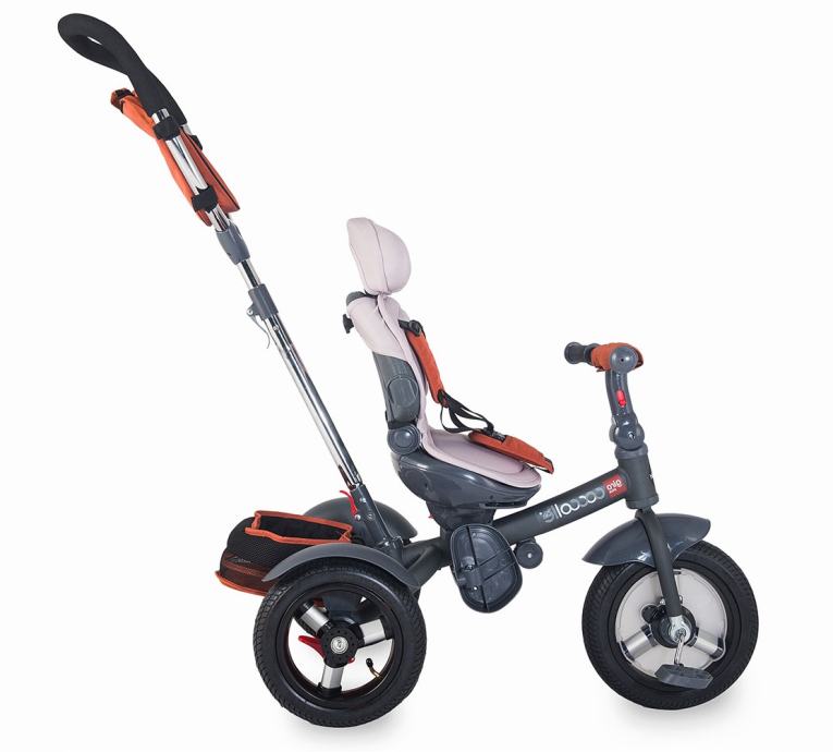 Ovaj multifunkcionalni tricikl se može koristiti od 9 mjeseci do 4 godine. Ima poseban dizajn koji pruža sigurnu i udobnu vožnju. Lagani metalni okvir je obojan mat crnom kako bi se uskladio s modernim trendovima.