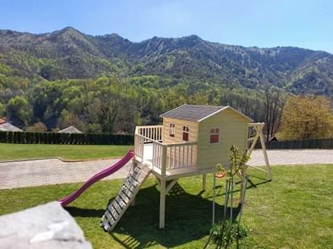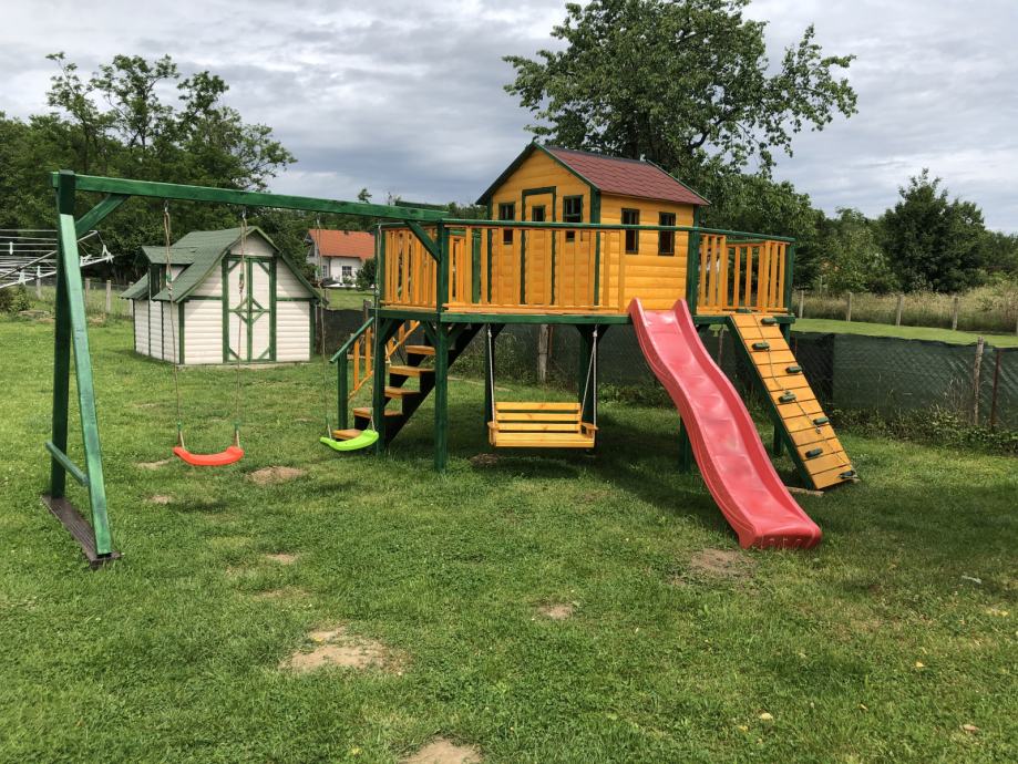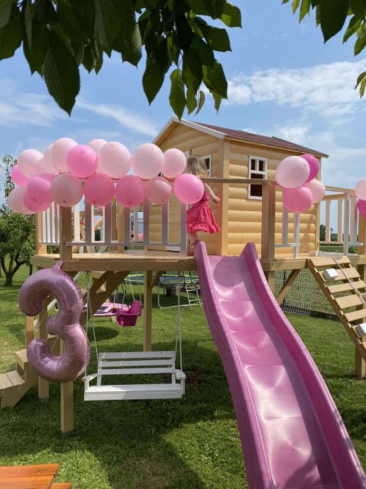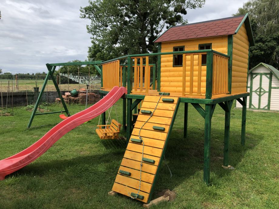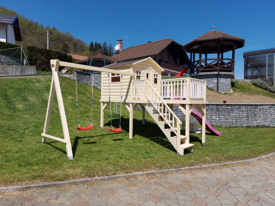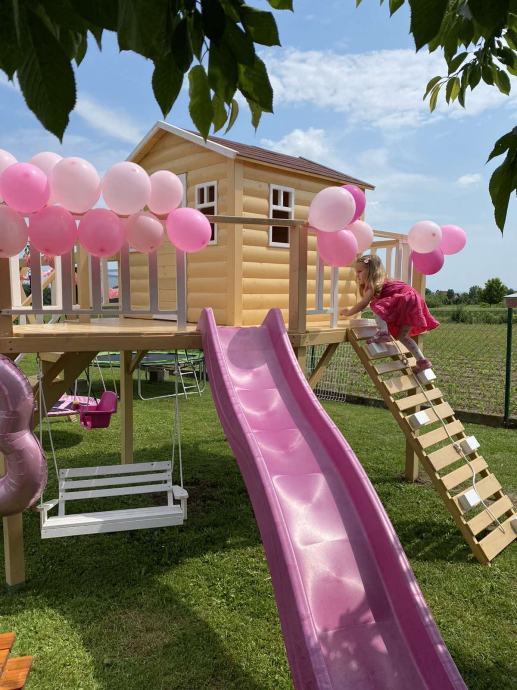 Kućica za djecu s toboganom, ljestvama i ljuljačkama