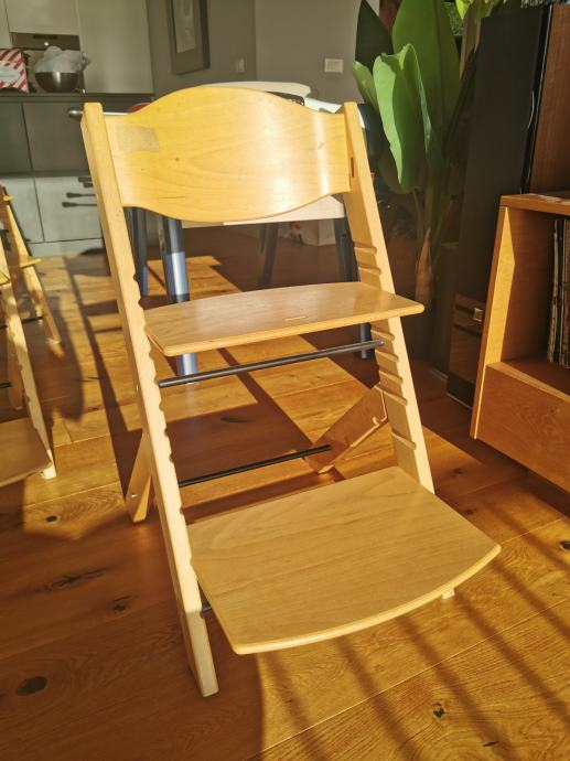 Prodajem 5 drvenih hranilica za dijecu po uzoru na Tripp Trapp Stokke. Mogućnost prilagođavanja rastu djeteta (do obične stolice).