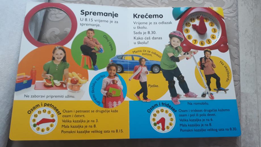 Nova edukativna knjiga Znas li koliko je sati, na zabavan način uči dijete na sat, sat ima kazaljke koje okrećete prstima, lijepa, zanimljiva, poučna, kvalitetna sa tvrdim koricama!