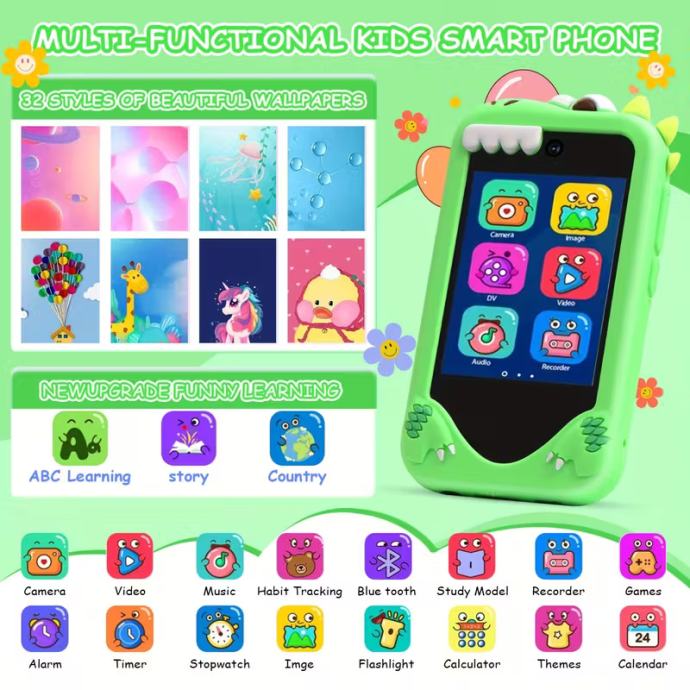 Edukativni pametni telefon za djecu s dvostrukim kamerama, 44 igre, glazbenim playerom, svjetiljkom, alarmom, pedometrom, pričama i učenjem tekstualnih riječi. Dolazi s vrpcom za nošenje, USB punjenjem i 2,8-inčnim zaslonom osjetljivim na dodir. Odličan poklon za dječake i djevojčice.