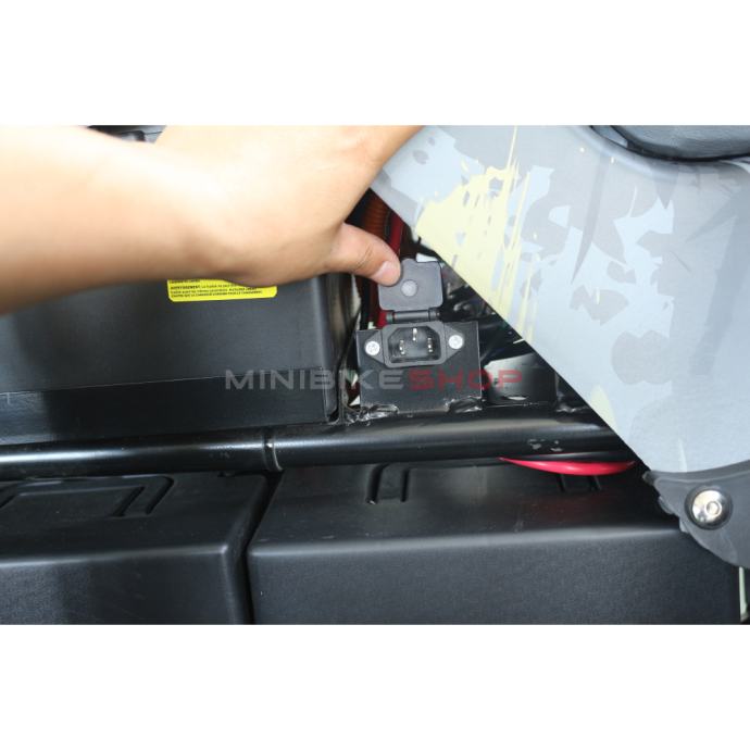 Quad je opremljen prednjim bubanj kočnicama i stražnjim disk kočnicama. Prednje bubanj kočnice kontroliraju se ručicom na upravljaču, stražnje disk kočnice kontroliraju se papučicom, desnom nogom. Motor je postavljen na stražnju opružnu osovinu, prijenos s motora na osovinu vrši se putem zatvorenog mjenjača. Prednji kotači su na zasebno opružnim ramenima ovjesa. Velike gume s terenskim gaznim slojem postavljene su na sofisticirane aluminijske naplatke, što osigurava savršeno prianjanje na terenu. Digitalni tahometar postavljen je na upravljač. Stroj je po svom agresivnom izgledu i ubrzanju blizak "odraslim" quad motorima s unutarnjim izgaranjem. Međutim, glavna prednost je potpuno tihi rad bez emisija. Stoga se može upravljati čak i na mjestima gdje bi buka ili miris ispušnih plinova mogli smetati okolini.