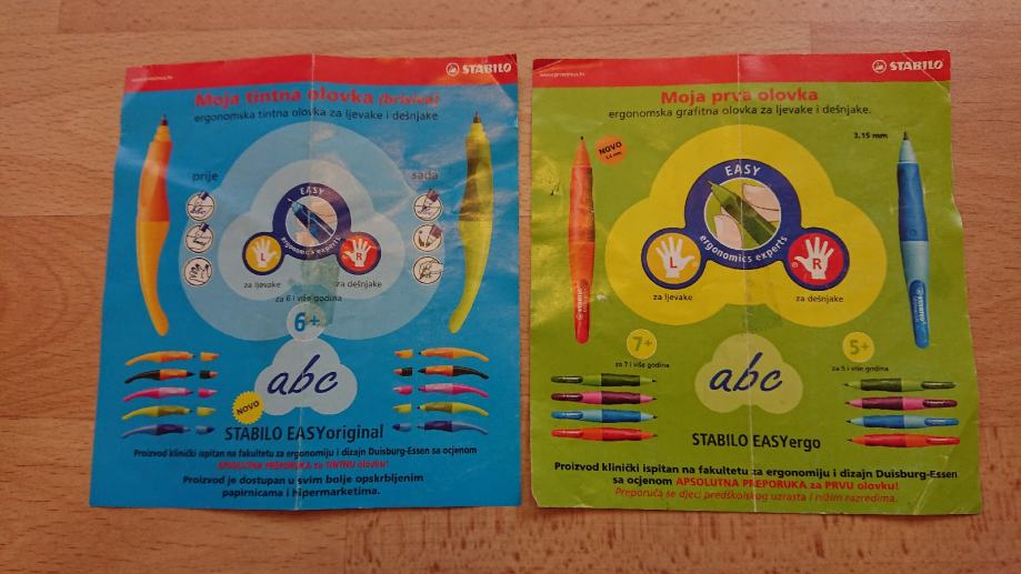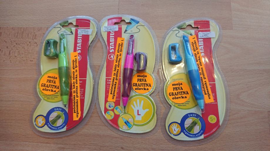 Stabilo ergonomska olovka za ljevake, kemijska olovka i grafitna olovka, za lakše učenje pisanja i bolje držanje tijela, više boja i vrsta, prodajemo svaku za 5,50 EUR.