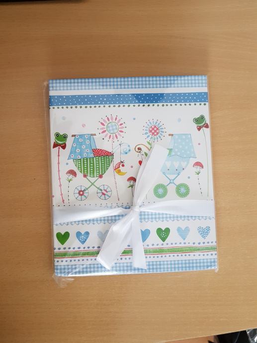 Novi i nikada korišteni foto album, u obliku harmonike, za 10 slika do dimenzija 13×18cm. S novorođenačkim motivima, odlično kao poklon za bebu.