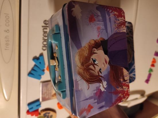 Prodajem prelijepu limenu kutiju s ručkom pogodnu za hranu ili nešto drugo, na temu Elza i Ana iz Snježnog kraljevstva. Nova, nekorištena.