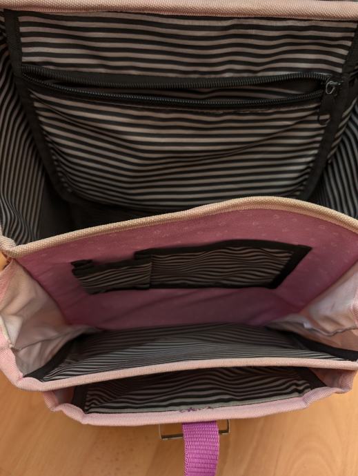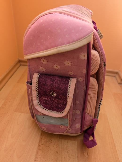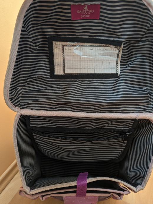 Gorjuss školska torba za djevojčice, korištena 1 godinu, ima tragove korištenja, stanje vidljivo na slikama.