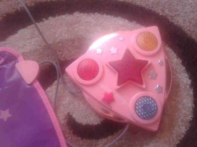 Prodajem hello kitty plesni studio, ima mogućnost spajanja na kompjuter i puštanja glazbe, on na sebi mjenja boje i mora se plesat po bojamaa...moguće i plesanje u paru tj.natjecanje:-), korišteno dva puta i stoji u kutiji...