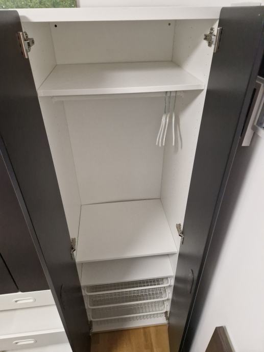 1. ormar ima policu, šipku za vješanje, police ispod vješanja, 3 ladice- košare
