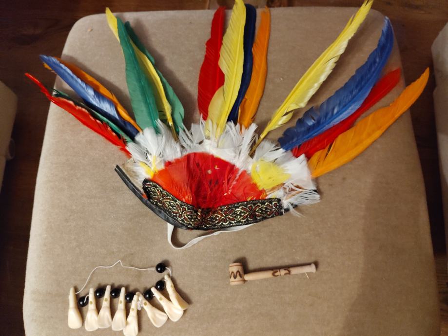Indijanska perjanica, ogrlica i lula.