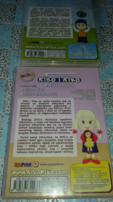 Prodajem jeftino DVD slikovnicu Kiko i Kika sa razno raznim igrama ..ucenje boja brojeva i jos puno toga sve se regulira sa daljinskim.. samo 7eur kom..