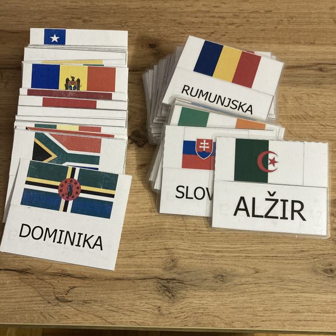 Kartice sa zastavama izrađene ručno, dio (desno na slici) je plastificiran.