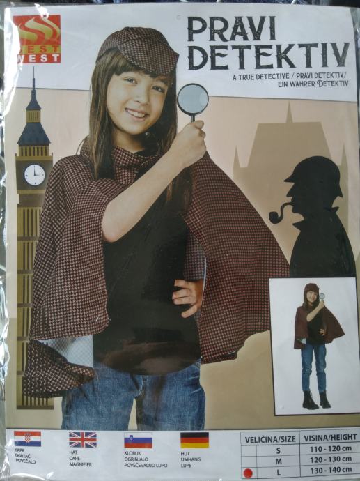 Prodajem jednom nošen kostim detektiva, vel. 130/140 (10-12 g.), nema oštećenja, kao nov.