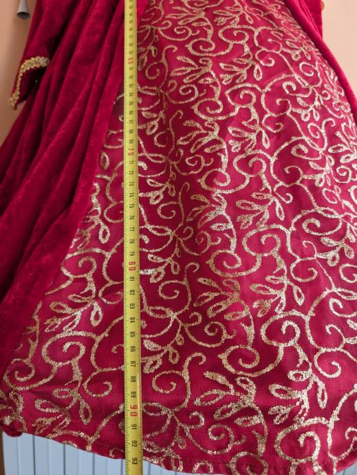 Nošeno za maškare, nije novo, ali može se još koristiti. Haljina se kopčala otraga na čičak, ali smo zašili drukere da se lakše kopča i ne otvara. Prodajemo u stanju kakvo je na slikama. Lako se sklopi i ne zauzima puno mjesta, stane u vrećicu (molim vidjeti sve slike).