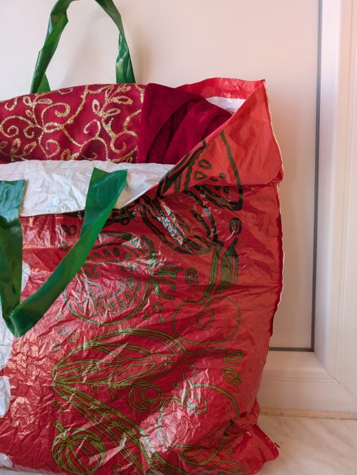 Crvene i zlatne boje, sa svjetlucavim šljokicama.
