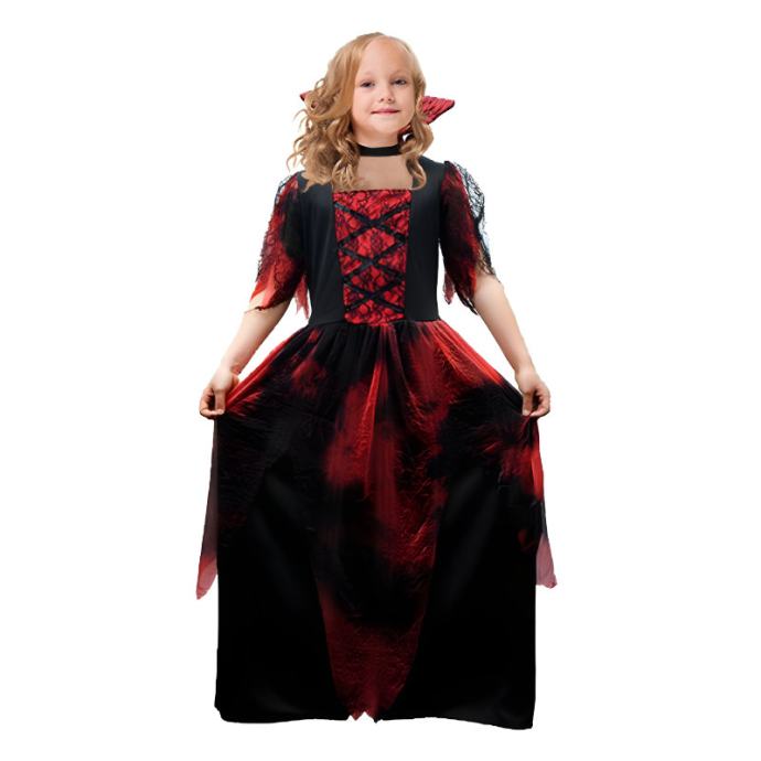 Crvena i crna boja dominiraju kostimom, simbolizirajući klasičan izgled vampirice.