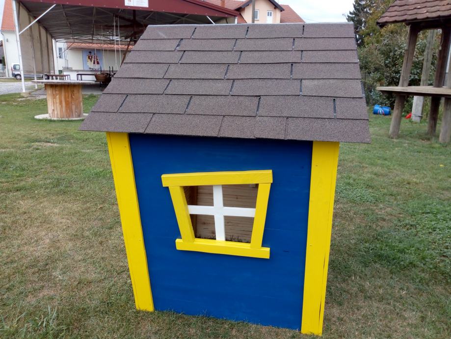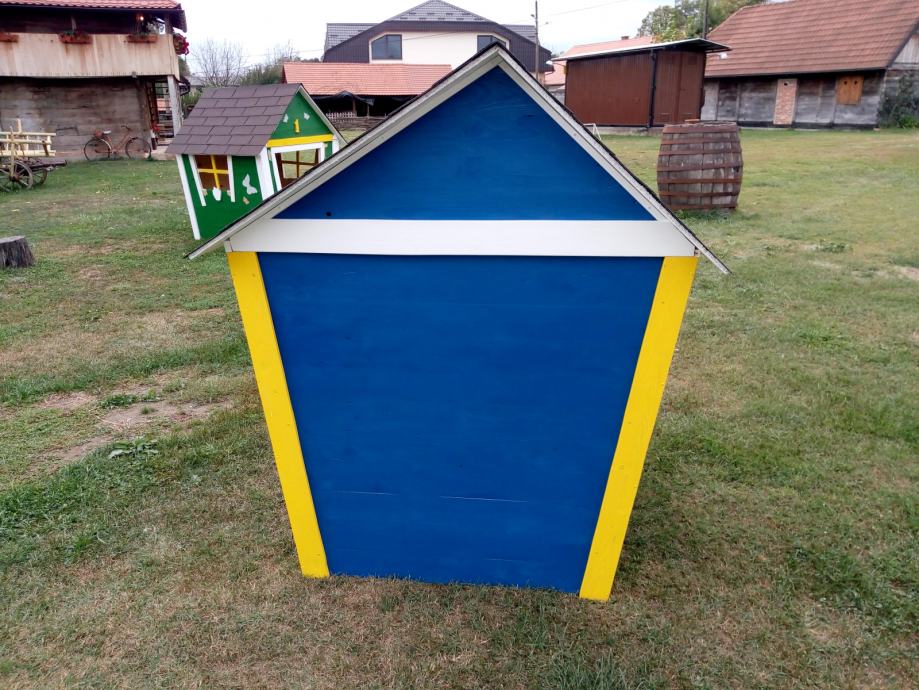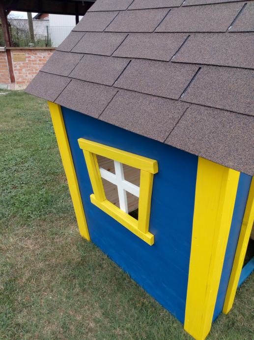 Kućica je pokrivena šindrom i višestruko obojana lakom.