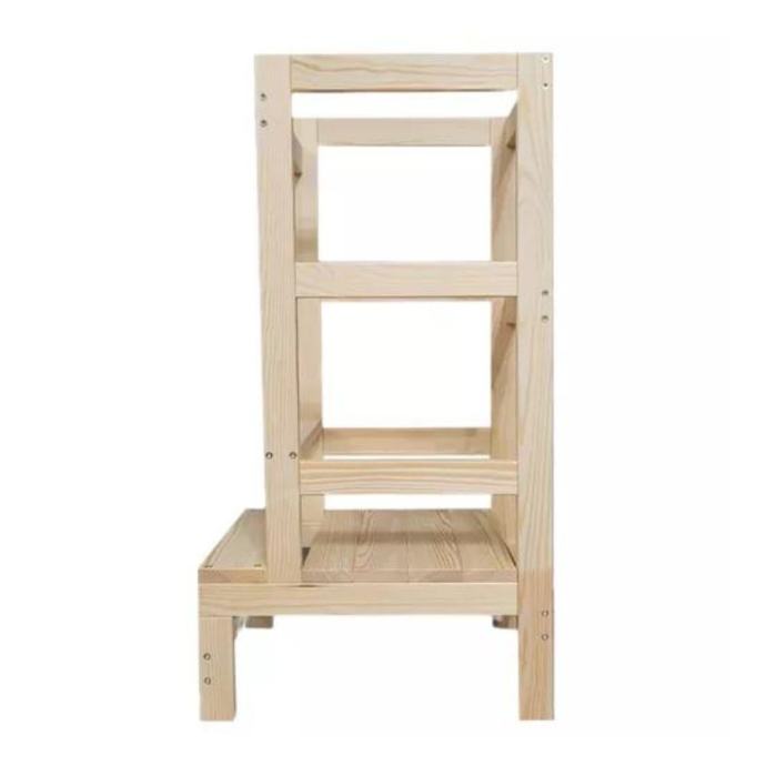 Izrađen od visokokvalitetne borovine 1. klase i metala, naš pomoćnik je robustan i dugotrajan. Dizajniran je s posebnom pažnjom na stabilnost i sigurnost, sa savršeno poliranim rubovima koji sprječavaju ozljede.