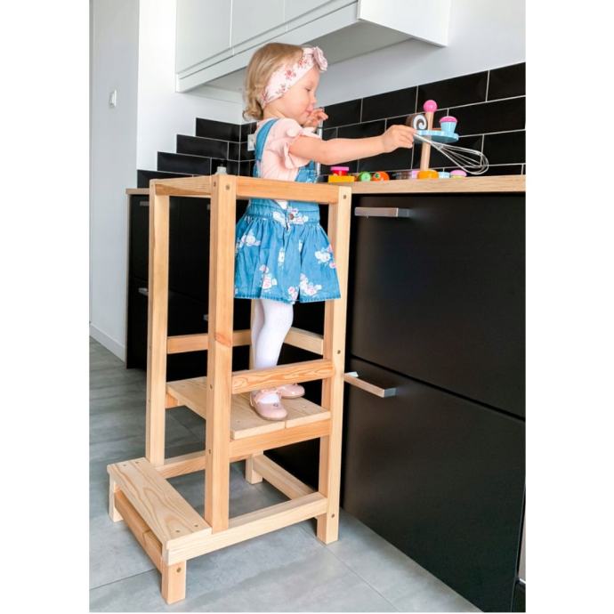 Dobrodošli u naš web shop! Predstavljamo vam naš kuhinjski drveni pomoćnik za djecu, savršen alat za mališane koji žele sudjelovati u kuhinjskim aktivnostima na siguran i zabavan način.