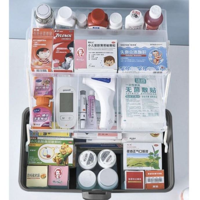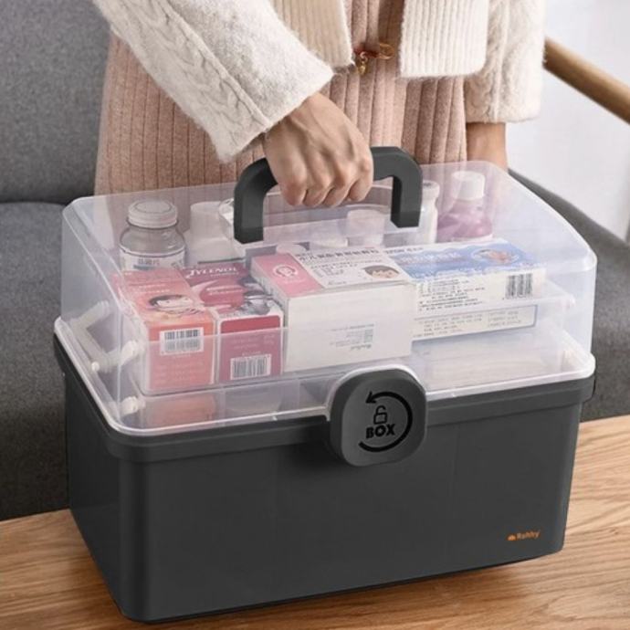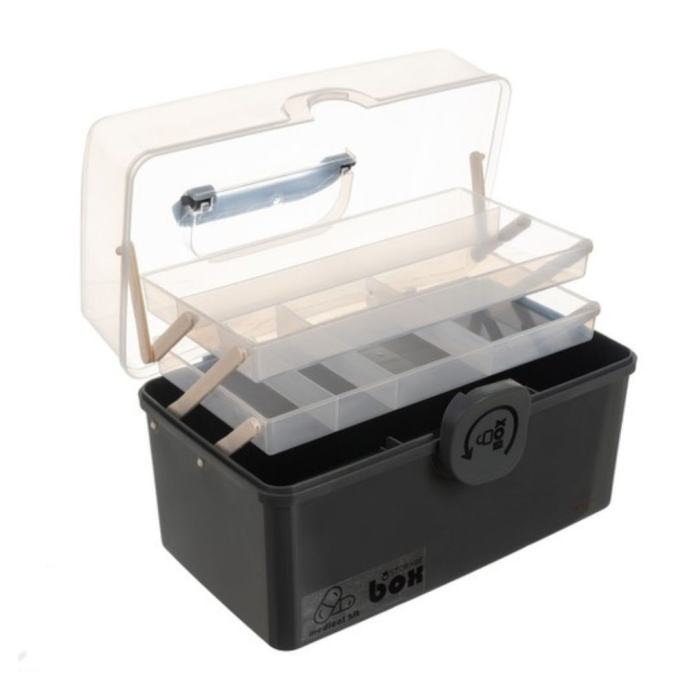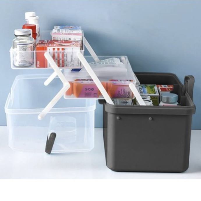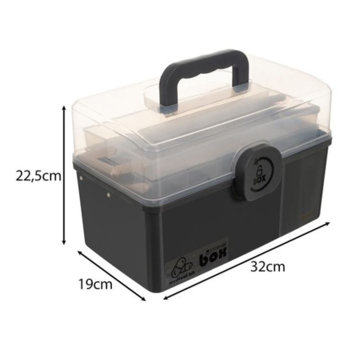 Zahvaljujući dvorazinskim, sklopivim policama, imate potpunu preglednost i jednostavan pristup lijekovima, kozmetici i ostalim sitnim predmetima. Prozirni vrh omogućuje vam brzo prepoznavanje sadržaja bez otvaranja kutije.
