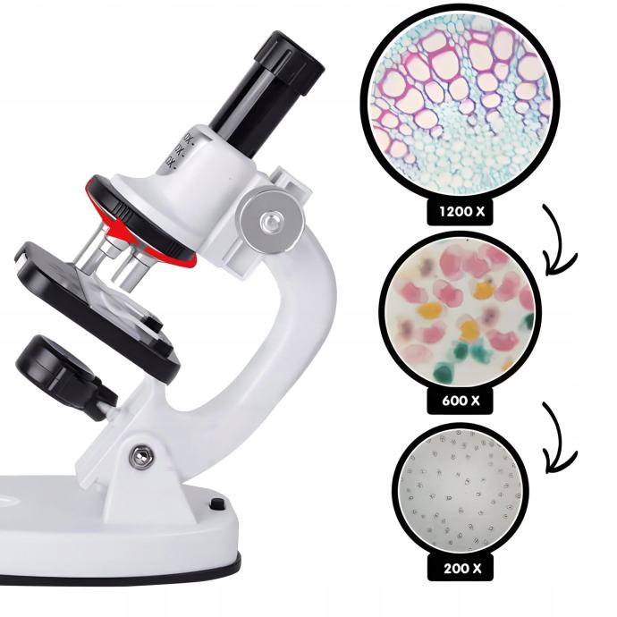 Povećanje od 1200x omogućava otkrivanje detalja koji su potpuno nevidljivi za slobodno oko. Zahvaljujući tome, dijete može upoznati fascinantne strukture i oblike mikro -profita.