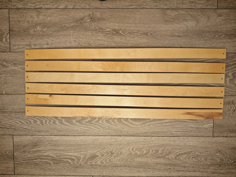 Nove, bile su dio podnica kupljenih u Jysk-u (Rolo podnice 90x200 BALKJOSEN) i rastavljane jer smo trebali popuniti veći razmak između podnica koje smo dobili s krevetom.