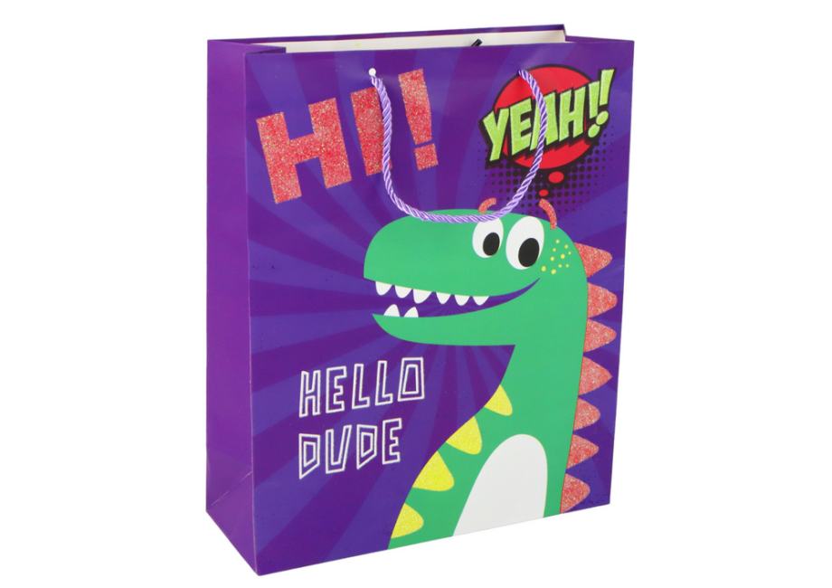 Ljubičasta papirnata vrećica za poklon od dinosaura 41,5 cm x 30 cm x