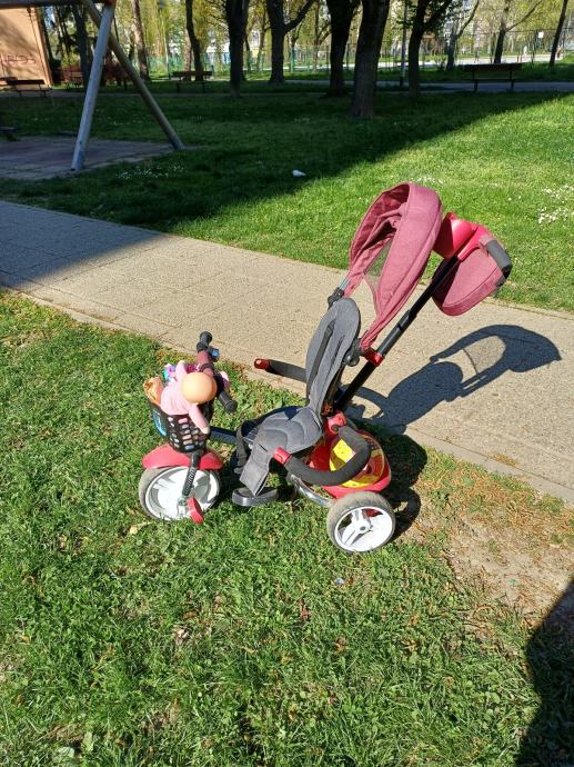Prodaje se rabljeni 3 u 1 dječji tricikl Lorelli Moovo. Dobro očuvani. Razlog prodaje višak. Isključivo osobna primopredaja kod kupnje odnosno bez mogućnosti slanja poštom. Više informacija o modelu https://www.ozone.hr/product/lorelli-tricikl-moovo-eva-gume-crveni/ . Redovna cjena je cca 110 Eura prodaje se za 40 Eura jer je dobro očuvano. Kontakt za više informacija i dogovore 0977087385