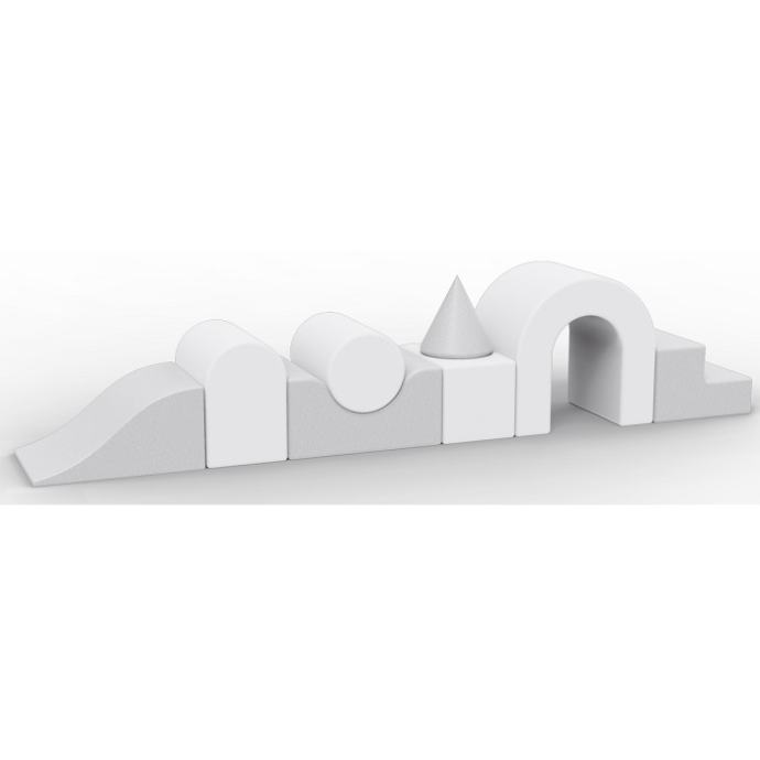 Set sadrži osam različitih prepreka koje se mogu graditi na različite načine kako bi najbolje odgovarale vašem prostoru, dok su mekane kocke jednostavne za nošenje i spremanje.