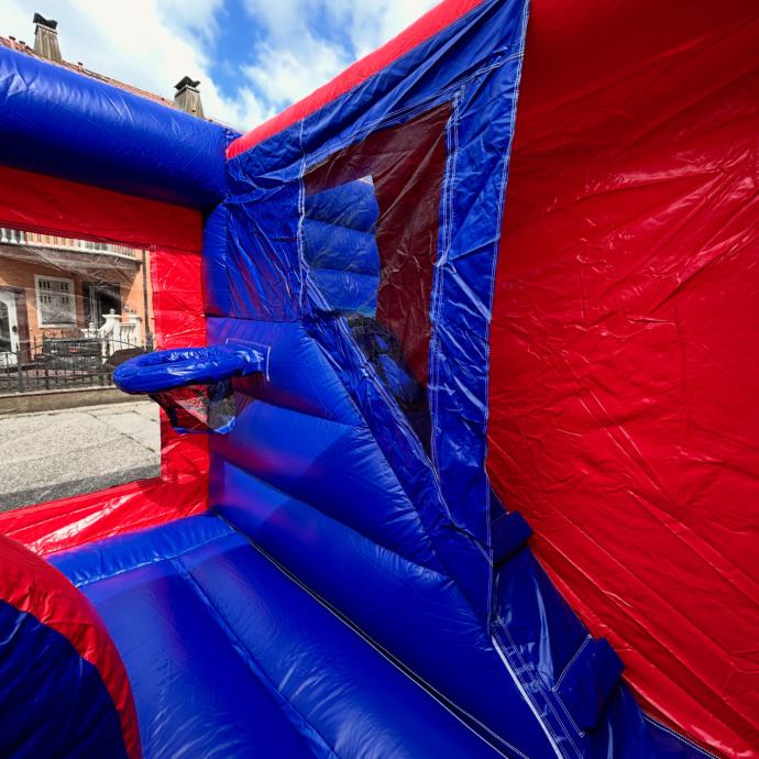 Opis proizvoda: tobogan, prostor za skakanje, kolut za provlačenje, koš