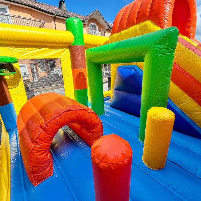 Opis proizvoda: veliki tobogan, prostor za skakanje i penjanje, stijena za penjanje.