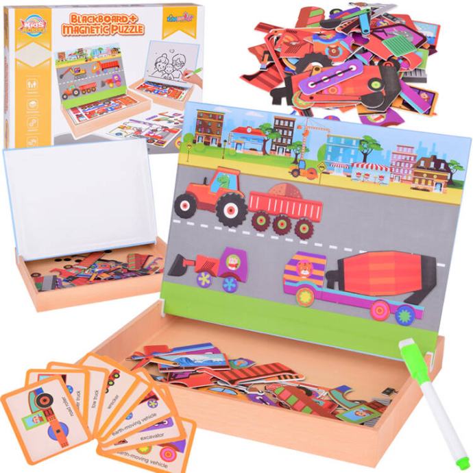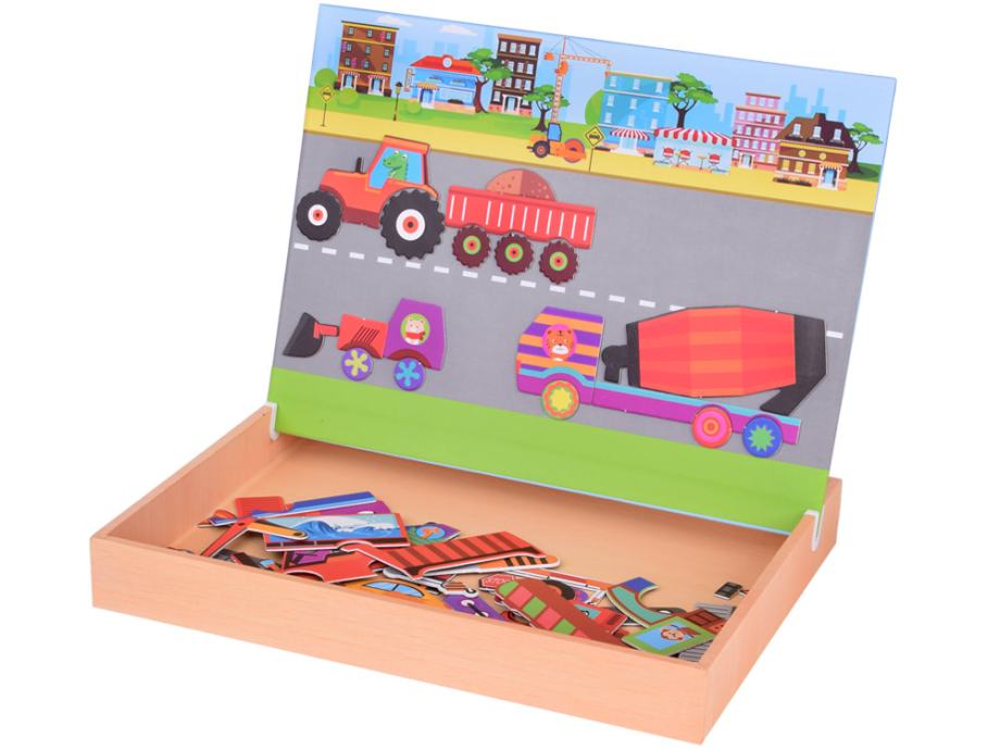 Magnetna ploča 2u1 s magnetskom slagalicom građevinska vozila