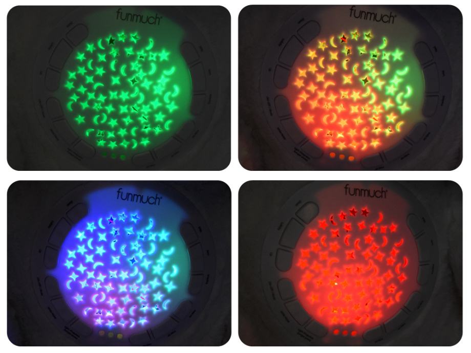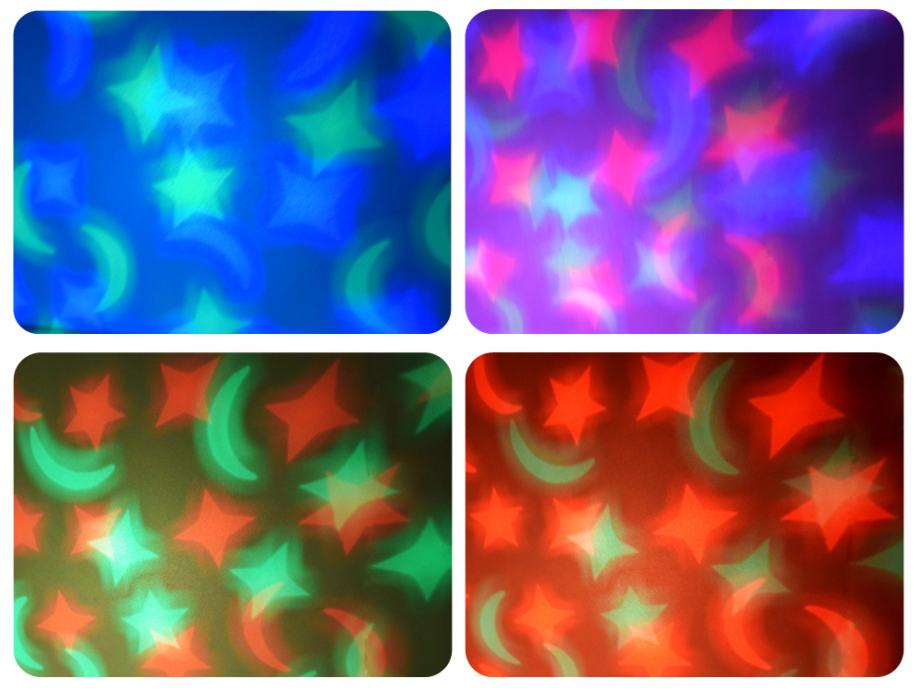 Funkcija projektora u maskoti ima šarene dugine boje kao što su: crvena, roza, zelena, narančasta ili plava. Sve se boje lijepo međusobno kombiniraju stvarajući čarobnu, šarenu zemlju. Ovaj projektor savršen je za uspavljivanje vaše bebe navečer kako biste razbili sumrak.