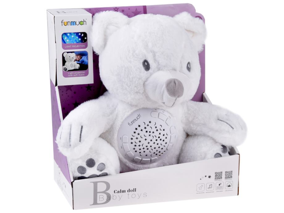 Plišani bijeli medo projektor sa zvučnim efektima idealan je dodatak dječjoj sobi, a može postati i ugodan prijatelj vašeg mališana u bilo koje doba dana i noći. Plišani medo omogućit će vam da umirite malo dijete svojim delikatnim, mirnim melodijama. Šarena svjetla koja stvaraju zvijezde i mjesece ispunit će dječju sobu stvarajući pravu zemlju snova.