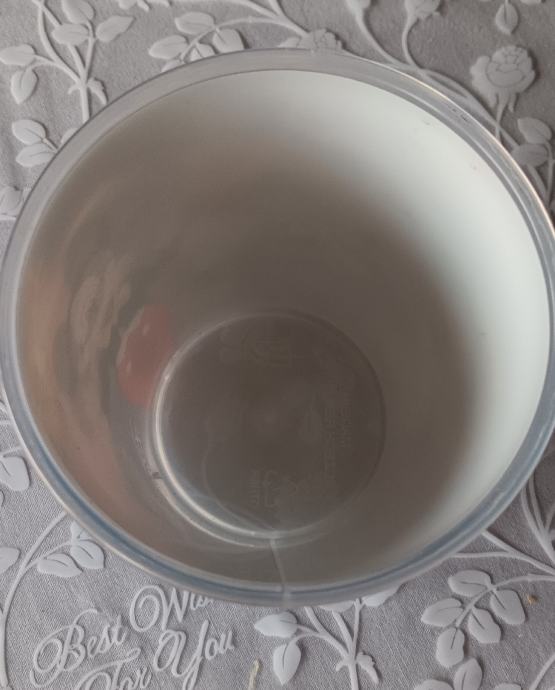 Caša visina 10,5 cm, dno fi 6 cm, otvor fi 8,5 cm.