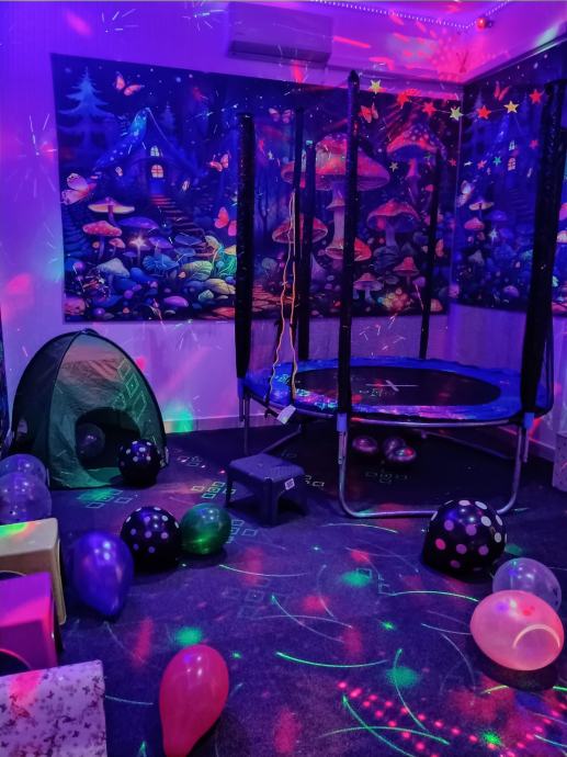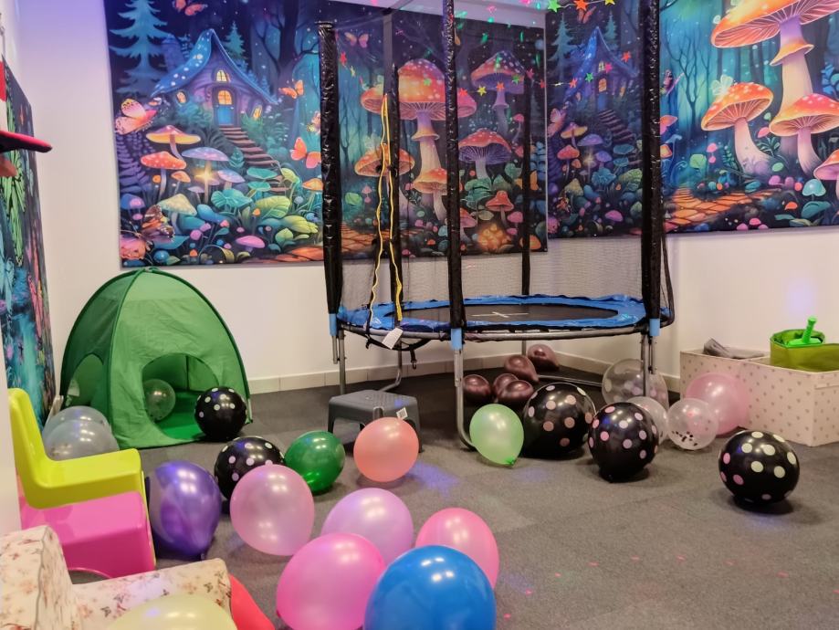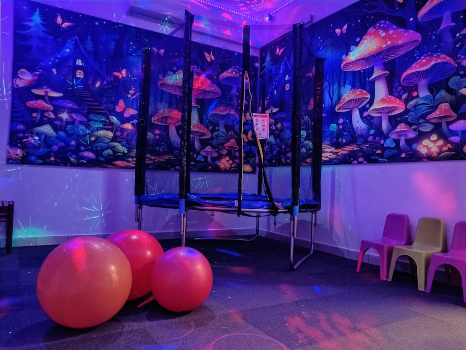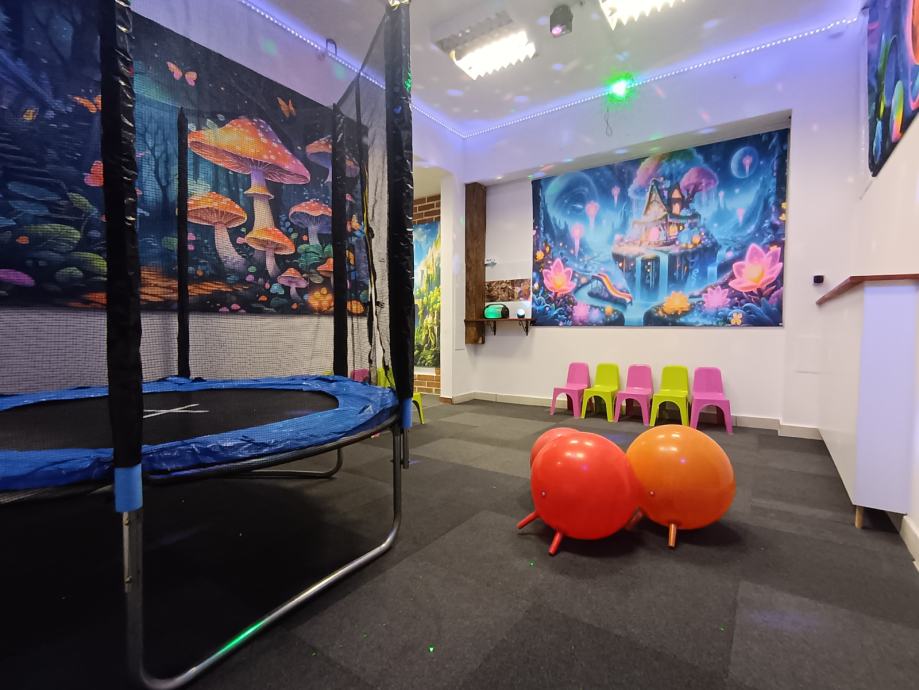 Prostor se sastoji od Disco sobe, Trampolina, Igraonica, Kutak za roditelje, Garderoba, WC, Čajna kuhinja