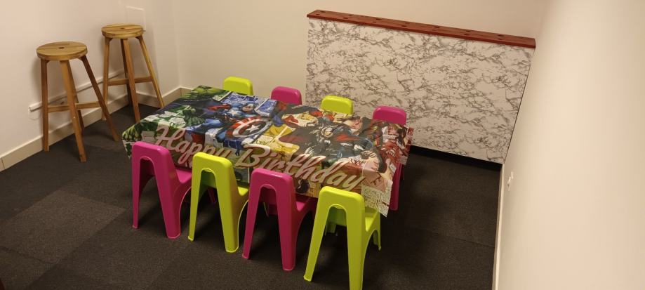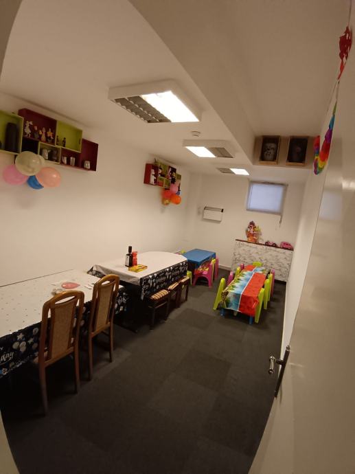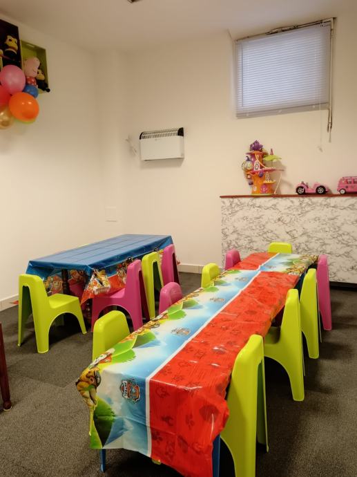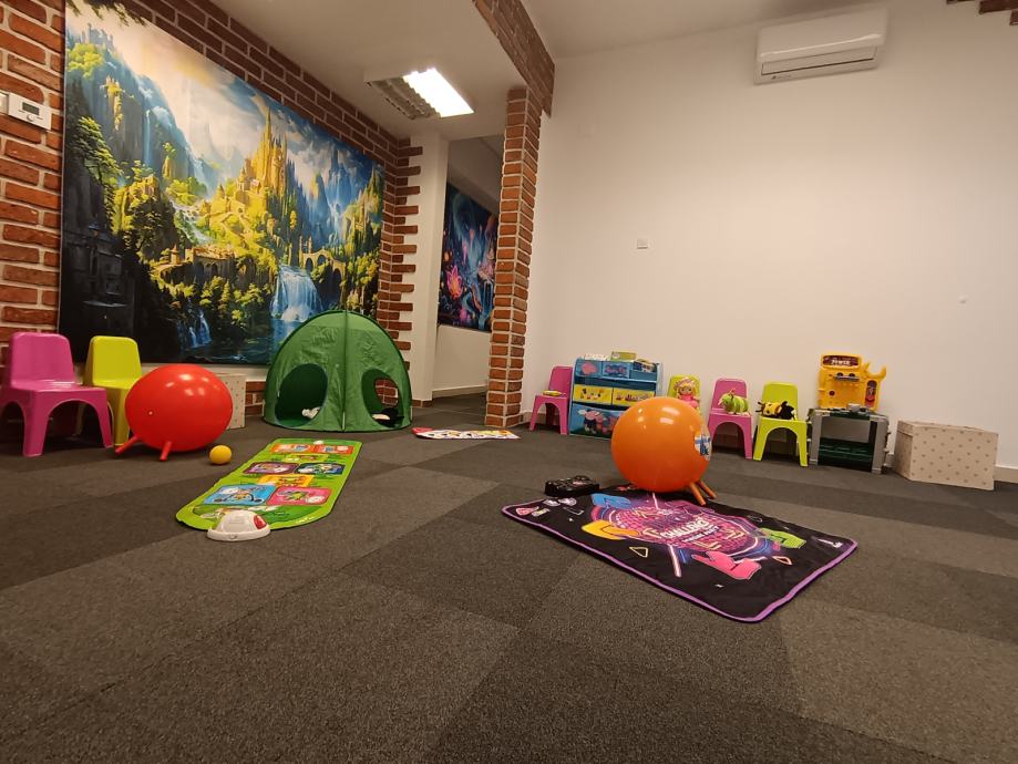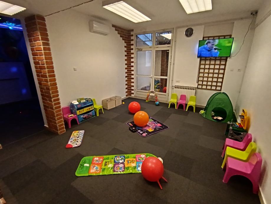 Na raspolaganju imate animatora za djecu (2 sata), disco sobu i light show, trampolin, igraonicu, kutak za roditelje s 12 sjedećih mjesta za odrasle i do 15 za mališane, vanjska galerija. Igraonica ima rashladne uređaje za hranu i piće te sav potreban pribor za jelo. Mogućnost cateringa ili osobnog pripremanja hrane za proslavu.
