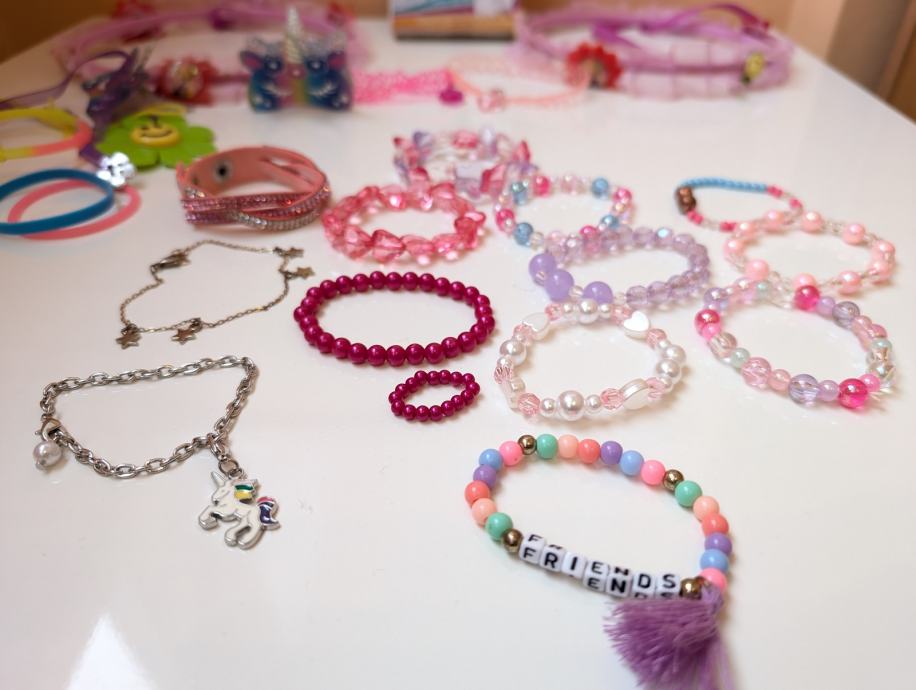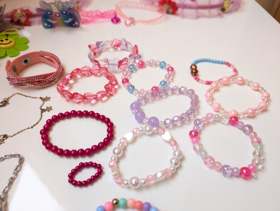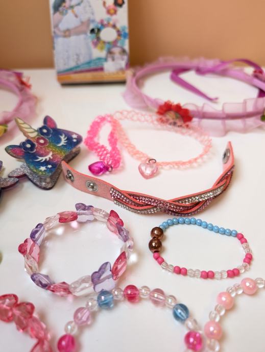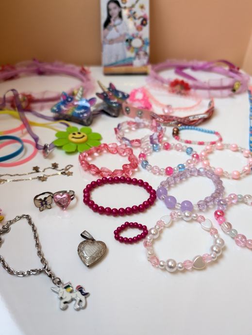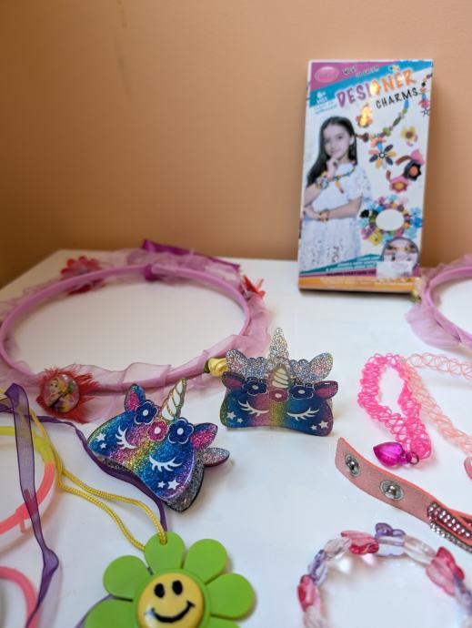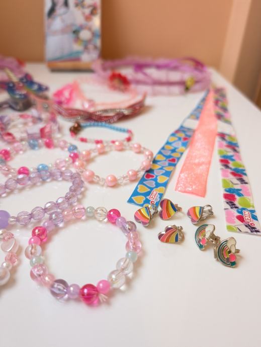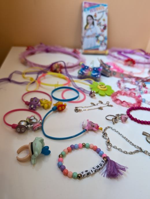 Nakit za djevojčice, narukvice, ogrlice, prsteni, naušnice, kopče za kosu, remeni, pribor za izrađivanje narukvica, razni modni dodaci.