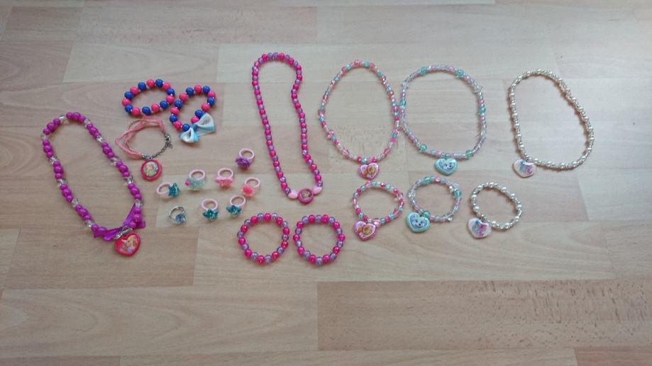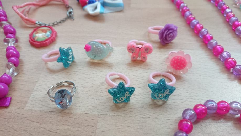Nakit za djevojčice, razne ogrlice, narukvice i prsteni sa raznim motivima, idealno za curice od 2 do 6 godina.